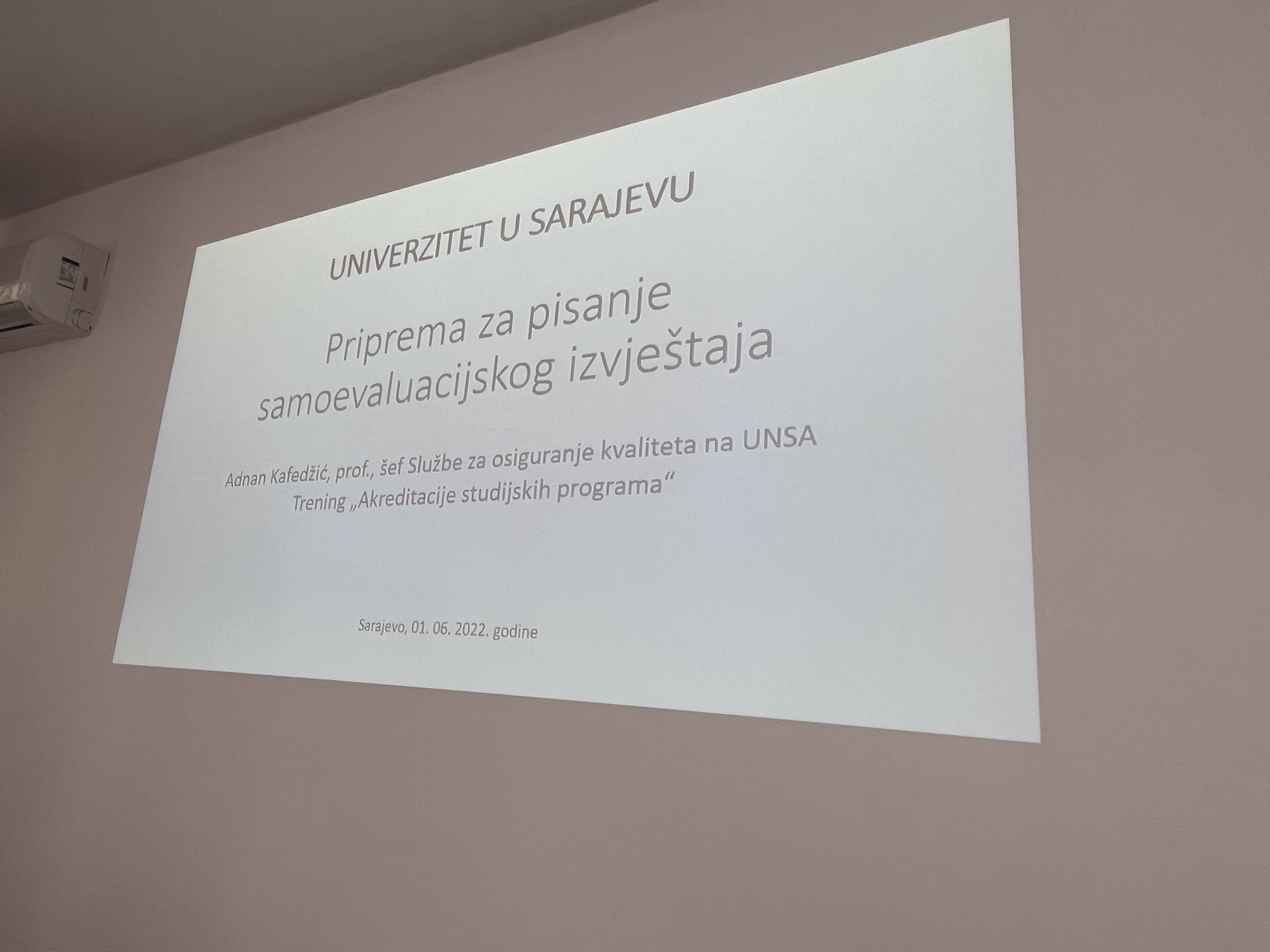 01.06.2023. godine sa početkom u 13:00 sati prof. Adnan Kafedžić, šef Službe za osiguranje kvalitete Univerziteta u Sarajevu održao je članovima Odbora za kvalitet i Timu za samoevaluaciju trening pod nazivom “Akreditacije studijskih programa” kao i pripremu za pisanje samoevaluacijskog izvještaja.