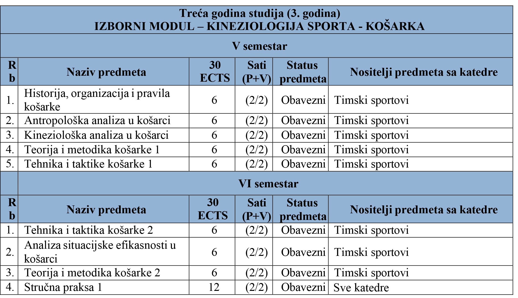 OPĆI SMJER /240 ECTS/ TREĆA GODINA