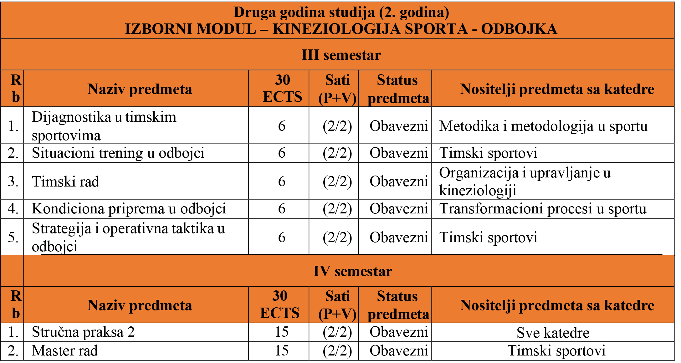 OPĆI SMJER /240 ECTS/ DRUGA GODINA