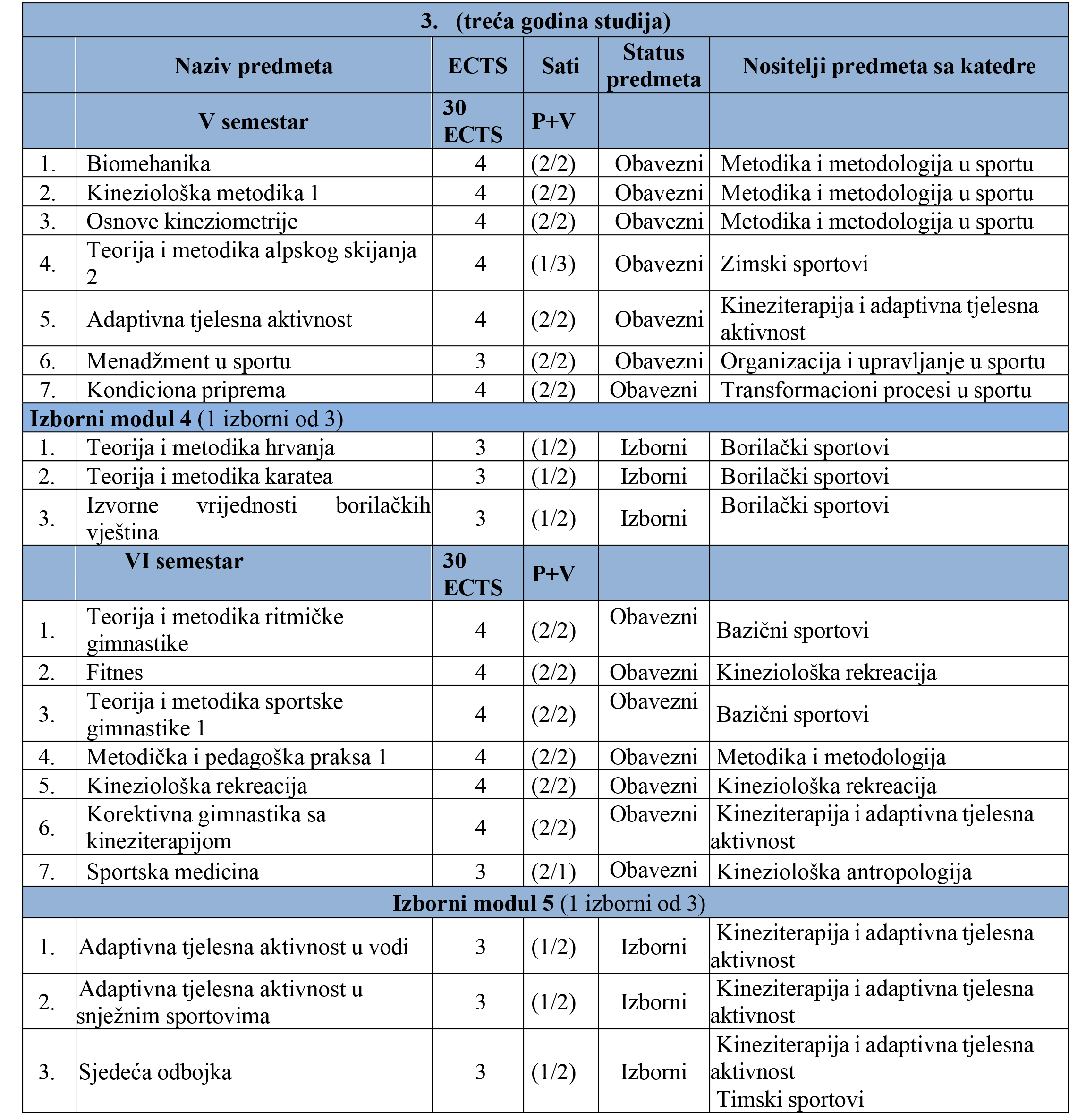 OPĆI SMJER /240 ECTS/ TREĆA GODINA