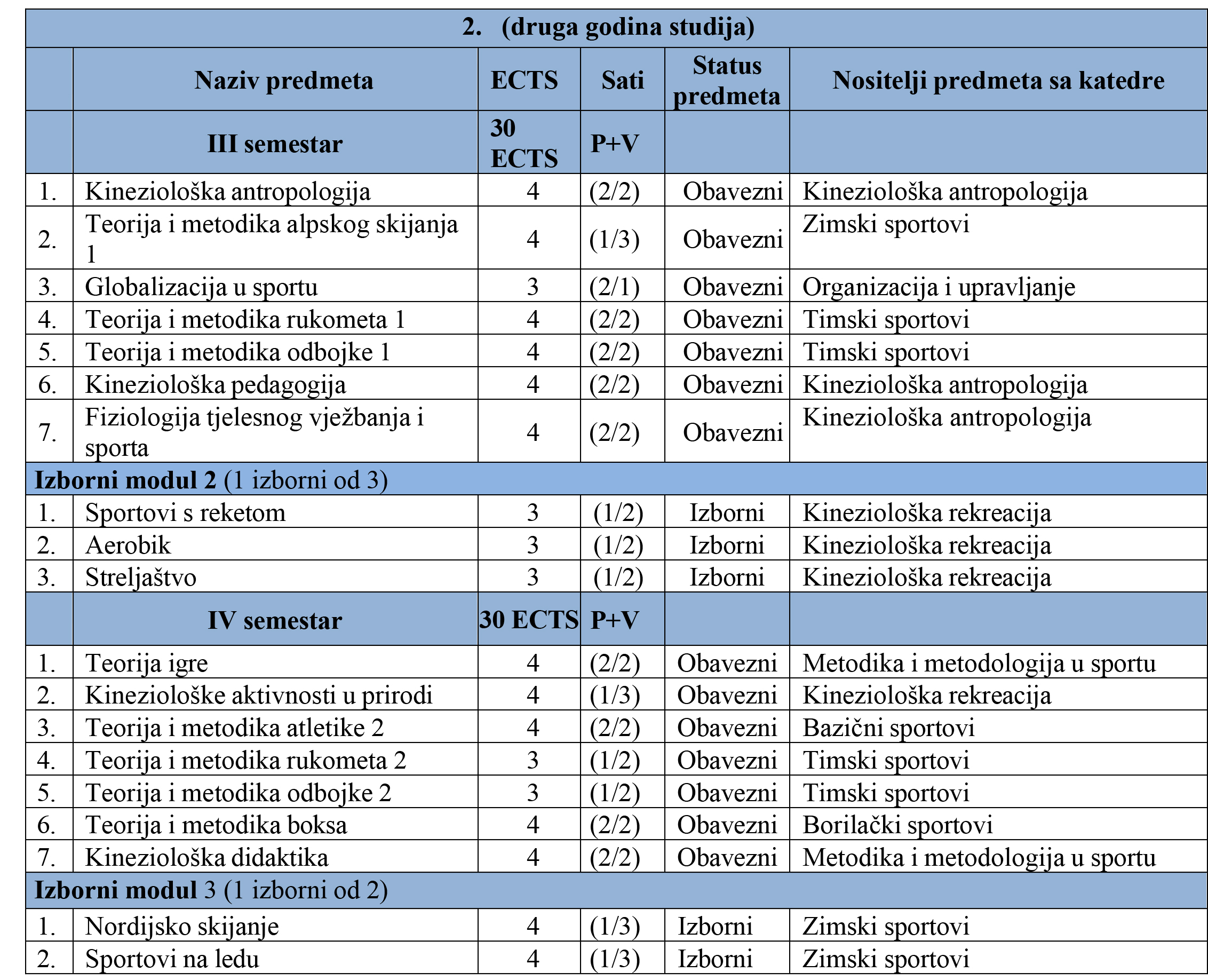 OPĆI SMJER /240 ECTS/ DRUGA GODINA