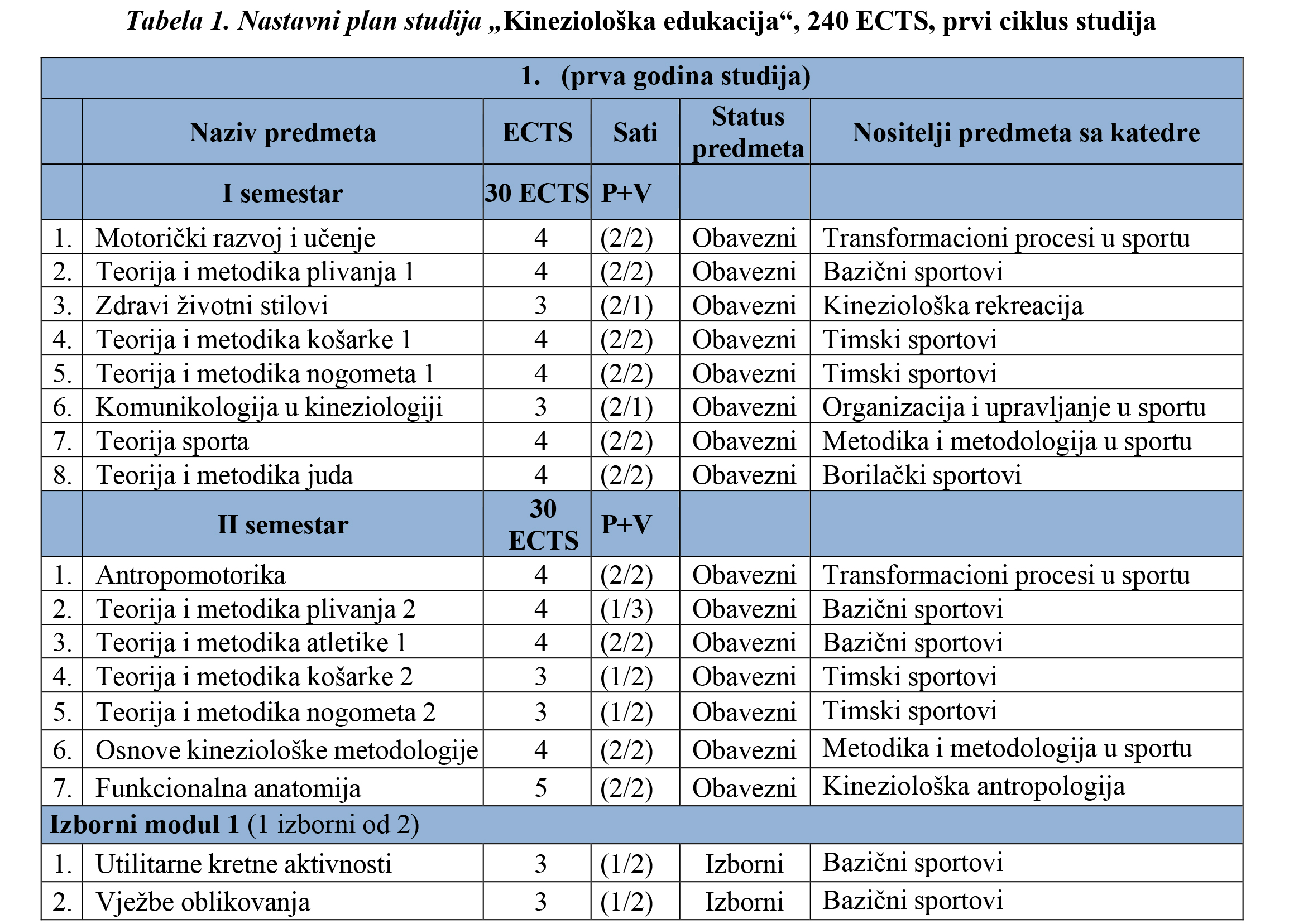 OPĆI SMJER /240 ECTS/ PRVA GODINA