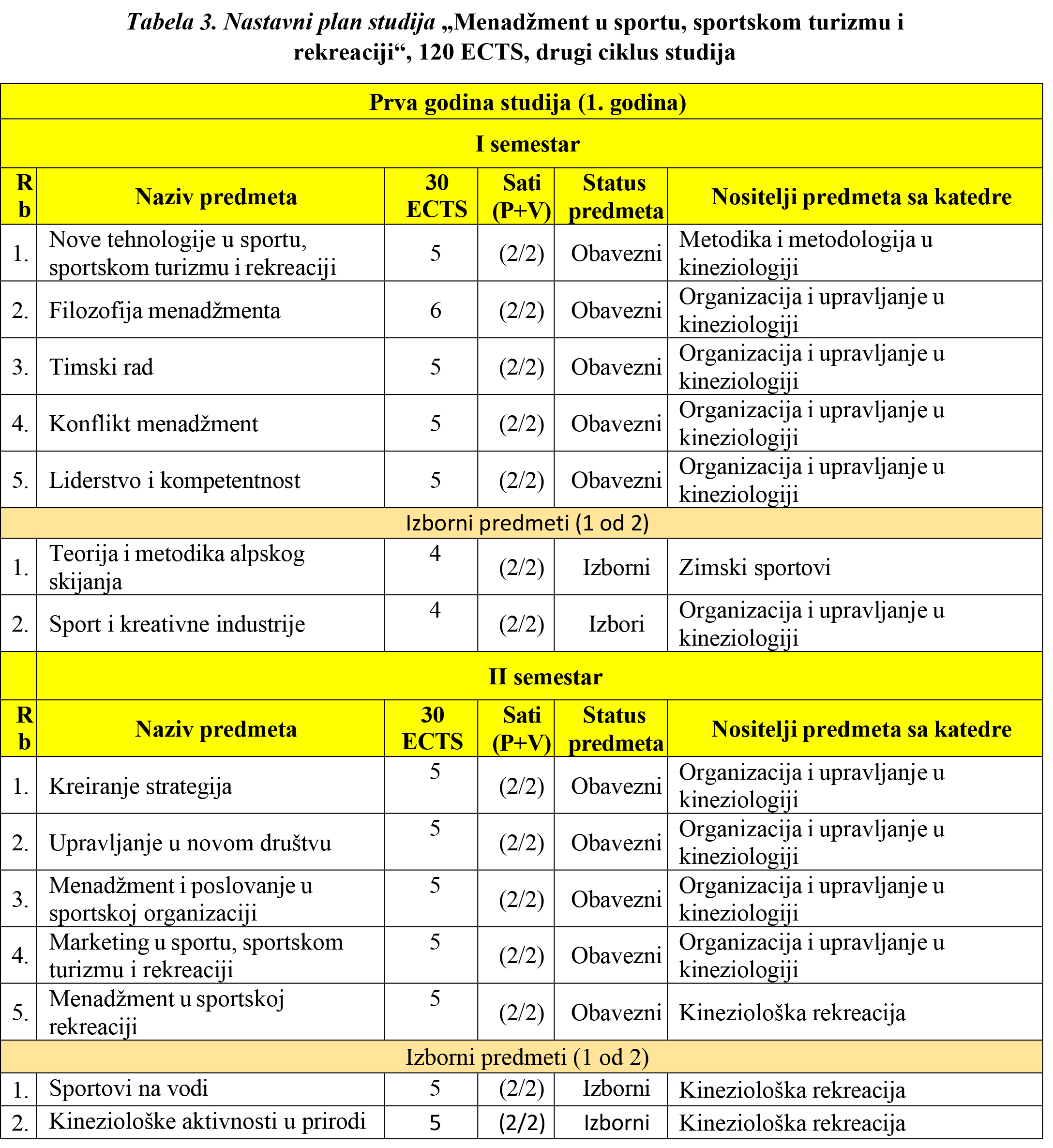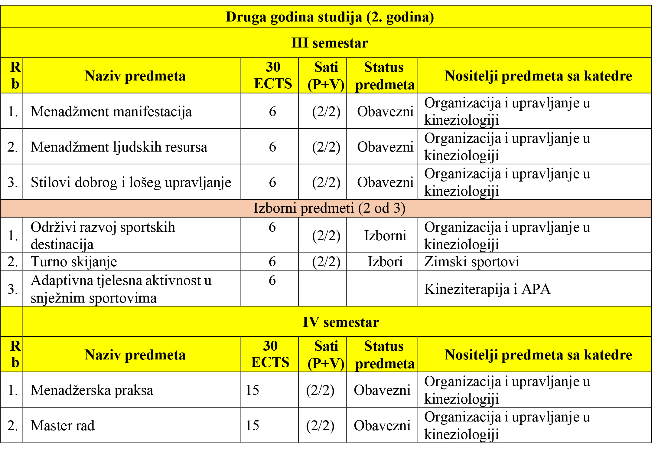 Menadžment u sportu, sportskom turizmu i rekreaciji II ciklus