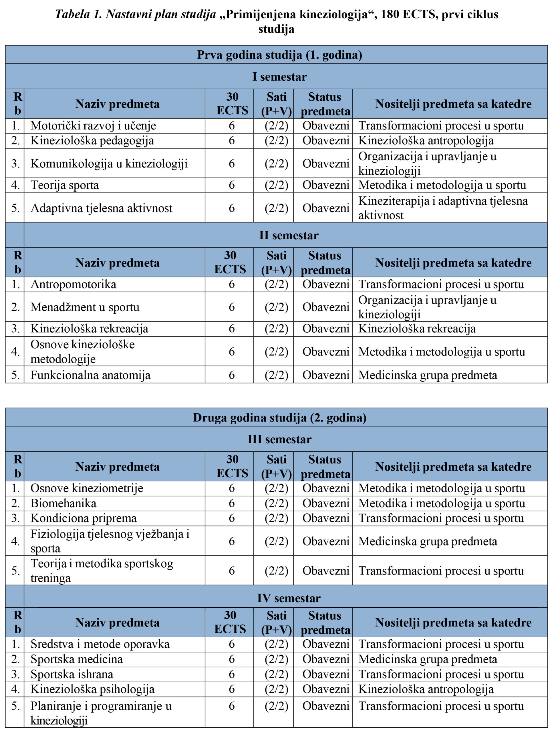 OPĆI SMJER /240 ECTS/ PRVA GODINA