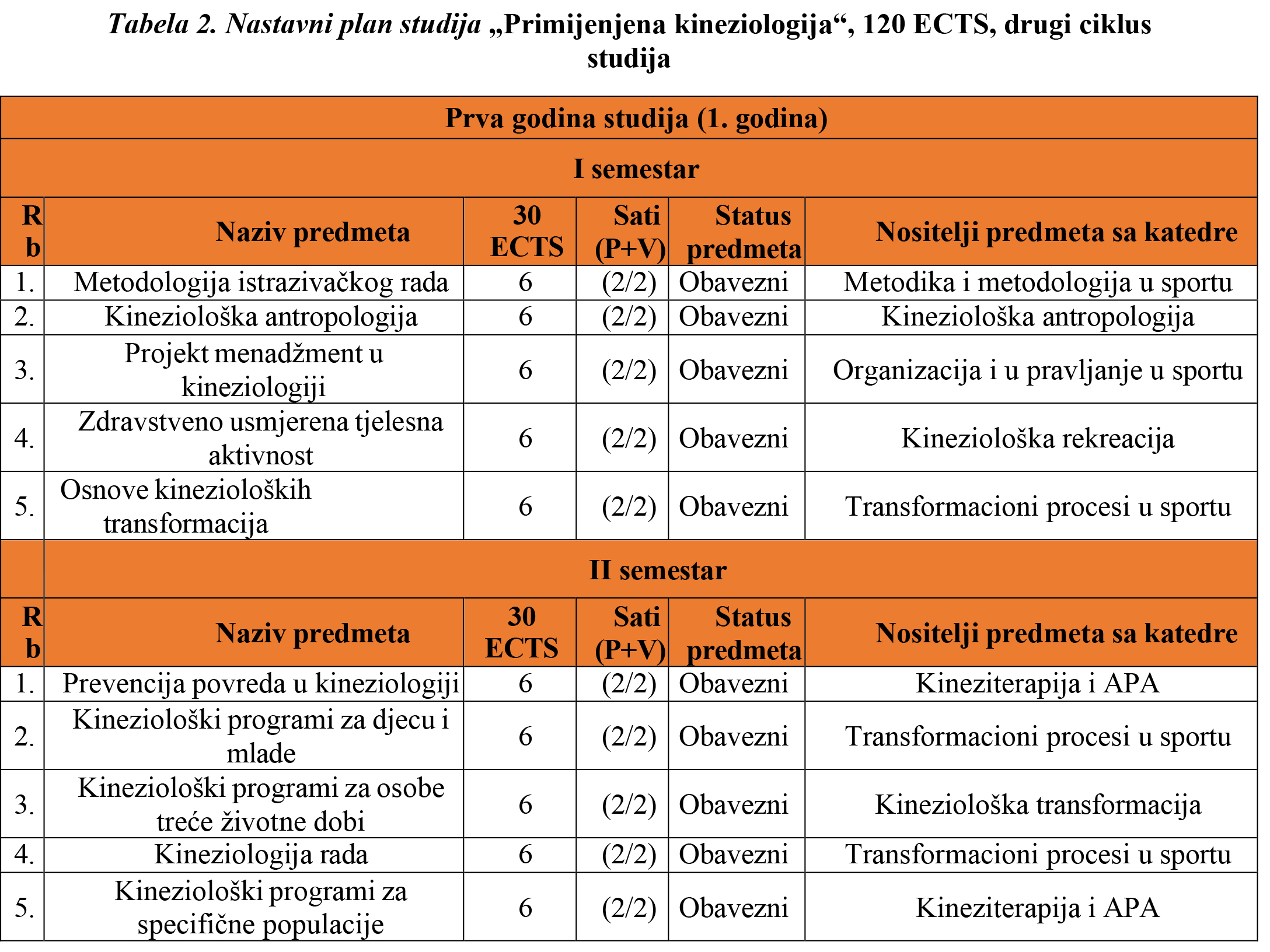 OPĆI SMJER /240 ECTS/ DRUGA GODINA