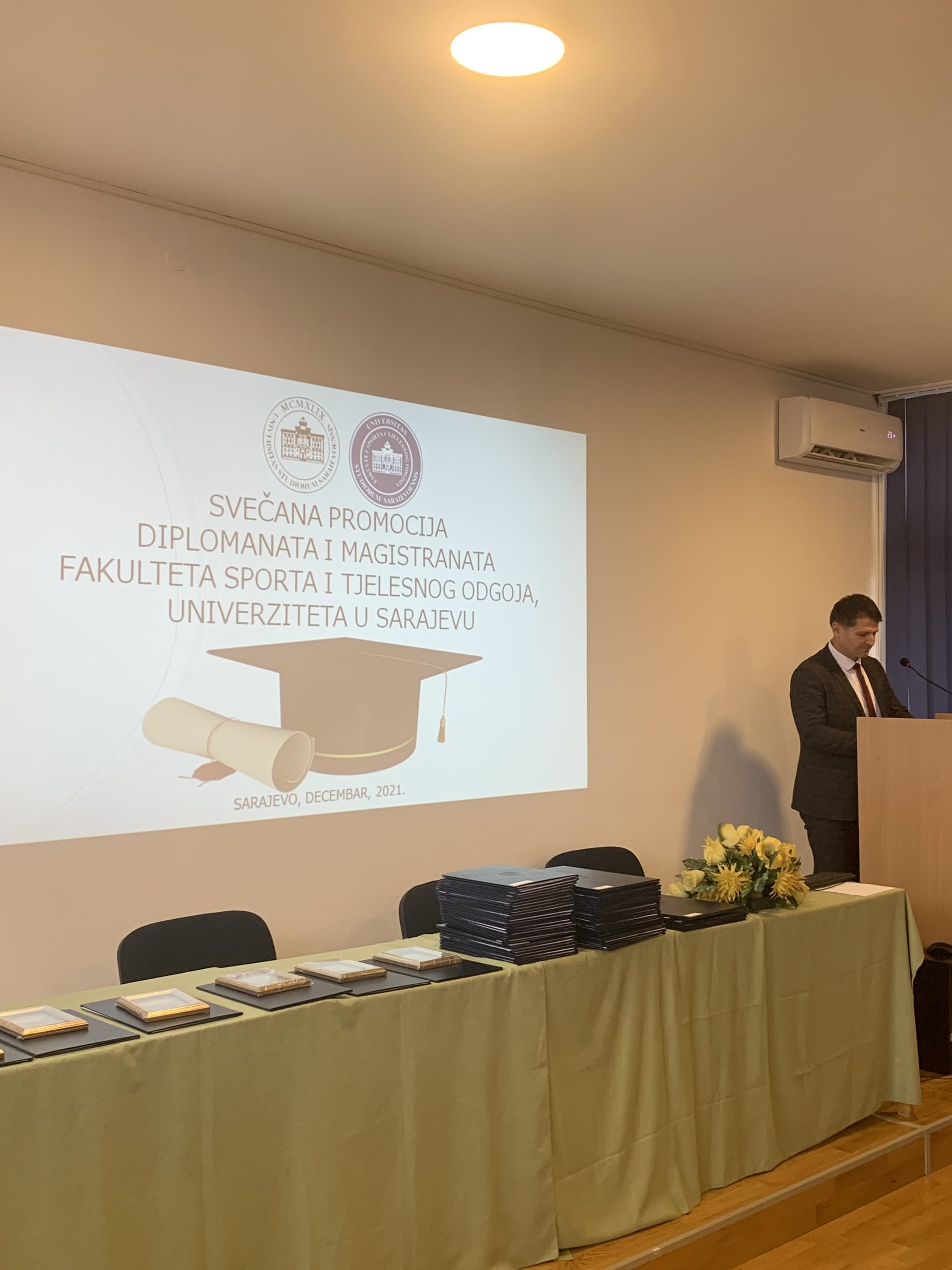 Na svečanoj promociji diplomanata i magistranata Fakulteta sporta i tjelesnog odgoja održanoj u ponedjeljak, 27.12.2021. godine u Amfiteatru Fakulteta sporta i tjelesnog odgoja, Univerziteta u Sarajevu, Fakultet sporta i tjelesnog odgoja promovisao je 30 diplomanata i 23 magistranta. Tri studenta su odlikovana Zlatnom značkom Univerziteta u Sarajevu, a 7 studenata Srebrnom značkom Univerziteta u Sarajevu.